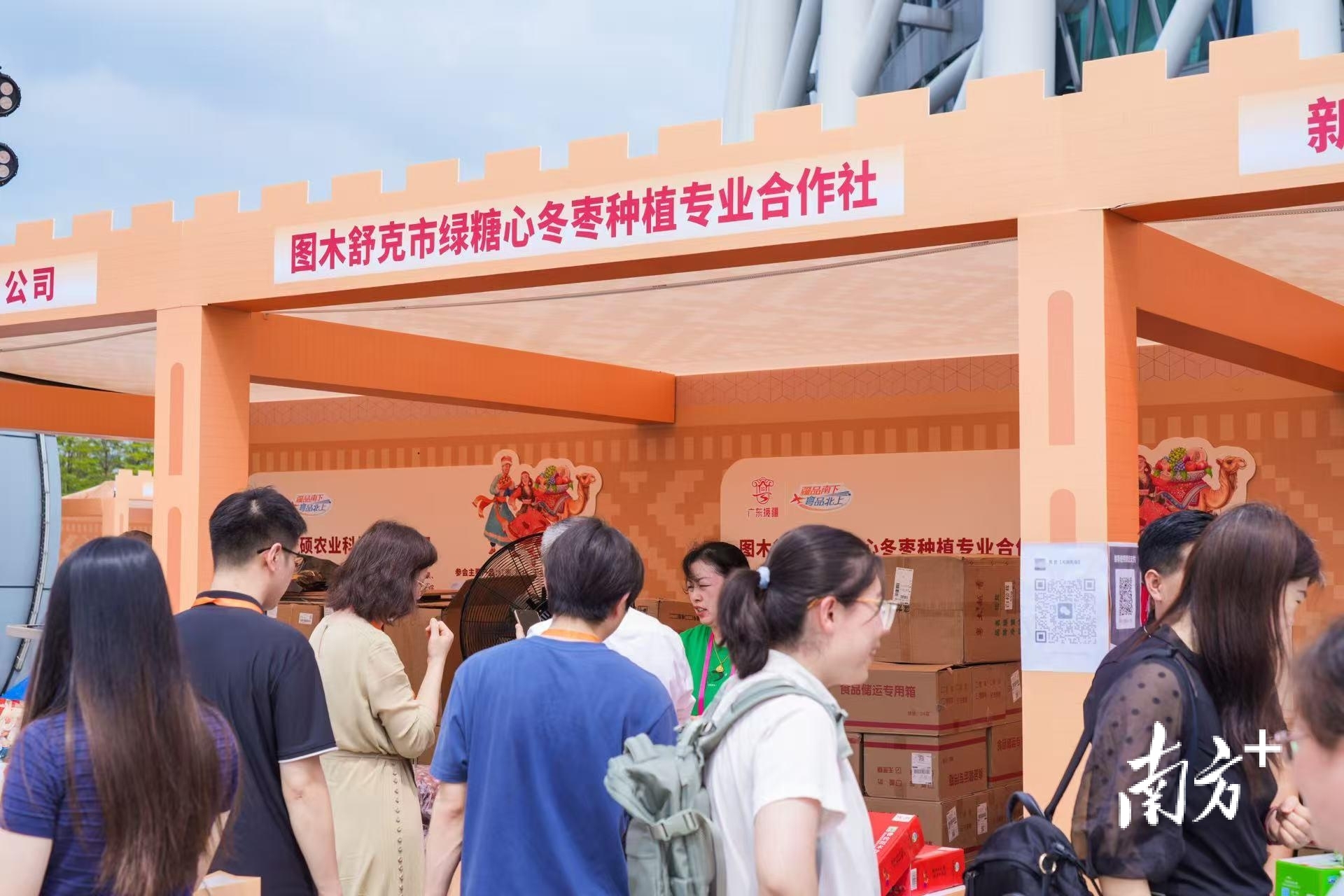 在图木舒克市绿糖心冬枣种植专业合作社展位上,颗颗饱满的三师灰枣、虎皮去核枣和香脆的冻干枣等产品琳琅满目。负责人热情地邀请往来顾客试吃:“我们当地种出来的枣子甜度高、果肉厚,十月底新鲜冬枣就要成熟了,到时候欢迎大家来三师品尝更新鲜的滋味!”不少顾客在试吃后纷纷下单,并表示非常期待鲜枣上市。